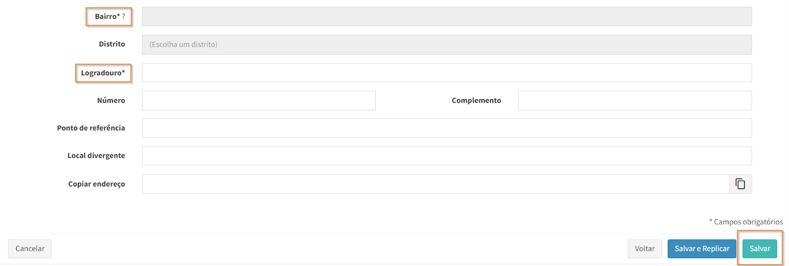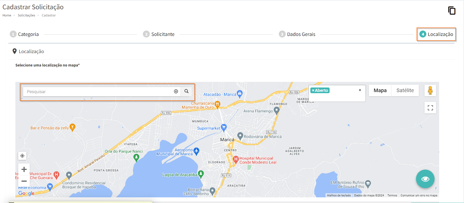 Após inserir todas as informações necessárias, clique em e confirme a localização.