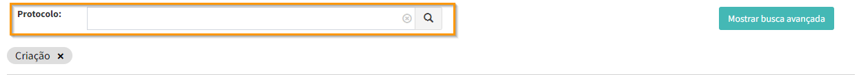 Além disso, é possível realizar uma busca rápida pelo número do protocolo da solicitação no campo de pesquisa. Basta inserir o número da solicitação e clicar em para pesquisar ou pressionar a tecla enter.