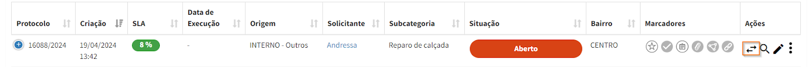 Para alterar a situação, clique no ícone , localizado na coluna de ações.
