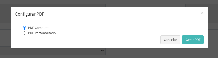 Selecione a opção “PDF Completo” ou a opção “PDF Personalizado” e clique em .