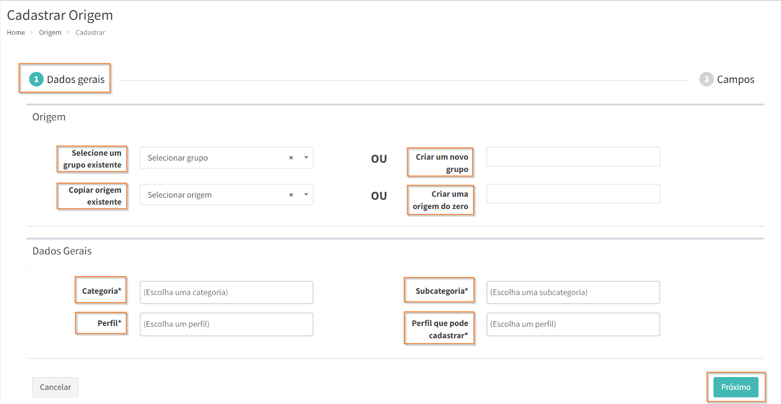 Como cadastrar uma origem?
