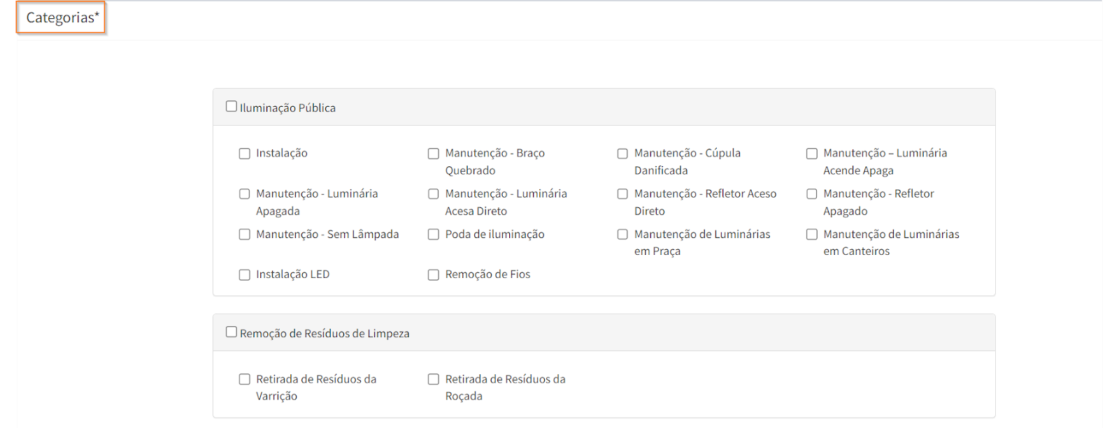 Em “Categorias”, selecione as categorias ou determinadas subcategorias nas quais o material deve estar disponibilizado.